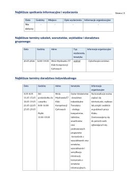 Harmonogram wsparcia – maj 2026